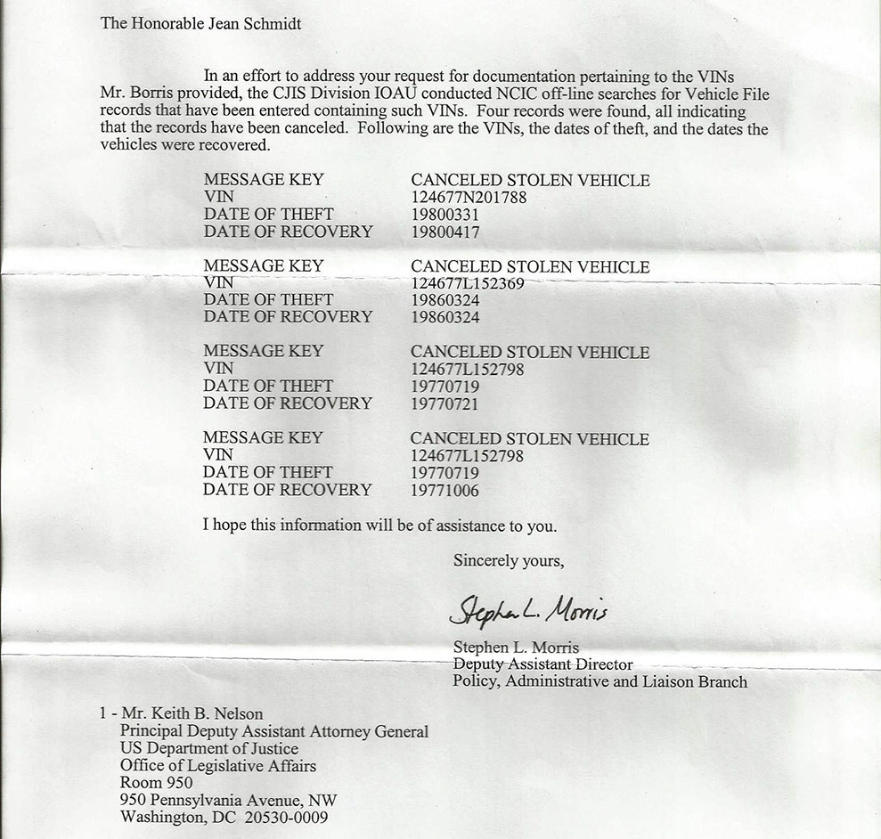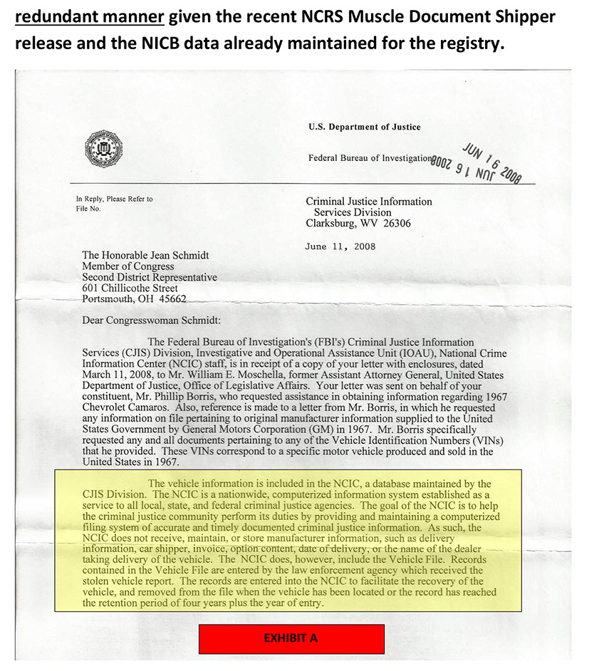 The compilation of the shipper report data was federally mandated and the rule of the law was satisfied initially by the FBI and later managed for compilation by the National Automobile Theft Bureau (NATB). Both the NATB and its 1992 successor National Insurance Crime Bureau (NICB) gained access to the mandated shipper report information through a relationship with the National Crime Information Center (NCIC).