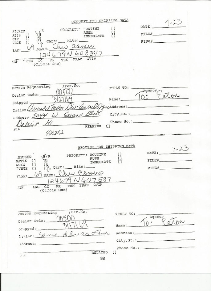 Through government rule making (starting in late 1966) the Government began recording and retaining VIN related information pertaining to vehicle production, specifically the vehicle shipper report.